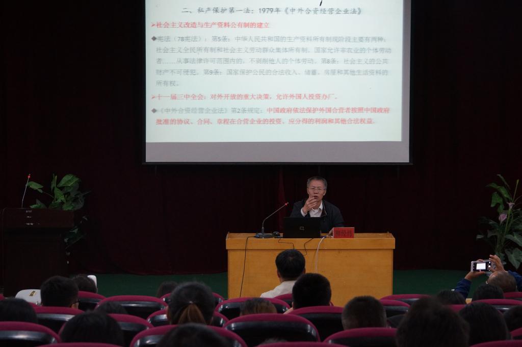 柳经纬教授从改革开放后中国政治经济发展的变革讲起,从民法权利的保护入手,阐述了民事法律发展的历程,重点讲述了30多部法律中的七部法律制定的历史意义和重大贡献。认为《中外合资经营企业法》是我国私有财产保护的“第一法”;《专利法》使知识变成了财产,是全部专利法的基础;《民法通则》是中国的权利宣言;《合同法》使民事运动迈向了合同自由;《物权法》使我国财产权得到了平等保护;《民法总则》开启了民事法律“法典化”的第一步。最后,柳经纬教授对我国民法的发展做出了展望。认为我国民法典编纂应该是一部体例科学、结构严谨、规范合理、内容协调一致的民法典。最后留给了聆听师生两个思考:如何构建一个完善的民商法律体系?新兴科技的民法问题如何解决?