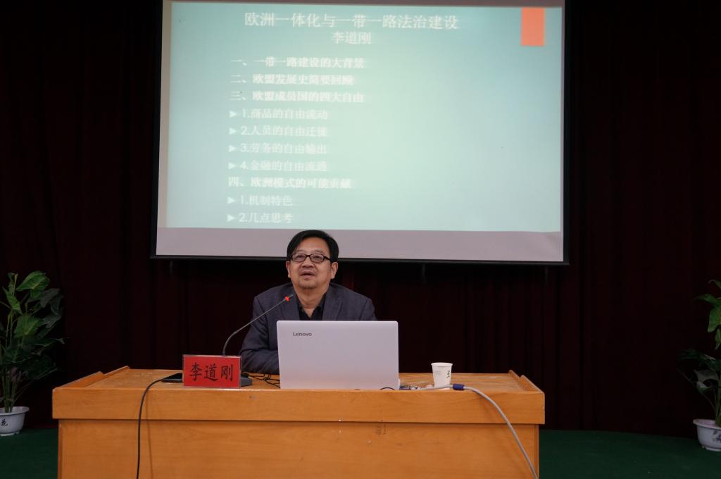 11月2日,在学术报告二厅,法学理论博士、原山东大学教授、兰州理工大学教授李道刚做了题为《欧洲一体化与一带一路法治建设》的学术报告,诸侯快讯ok1122官网全体师生参与聆听。
