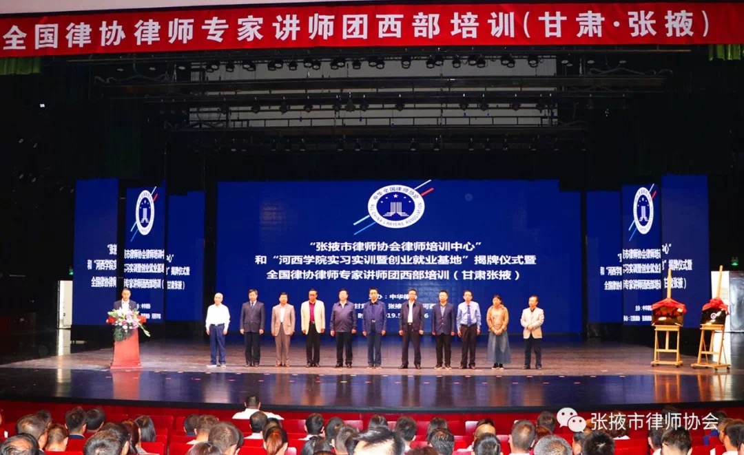 5月25日上午举行了“张掖市律师培训中心”和“ok1133快讯官方网站实习实训就业创业基地”揭牌仪式暨全国律协律师专家讲师团授课培训开幕式。ok1133快讯官方网站党委副书记王兵,张掖市政府副秘书长汪卿泰,市委政法委副书记、市法学会常务副会长尹叶红,市司法局局长杨瑷芳同志等嘉宾出席会议。