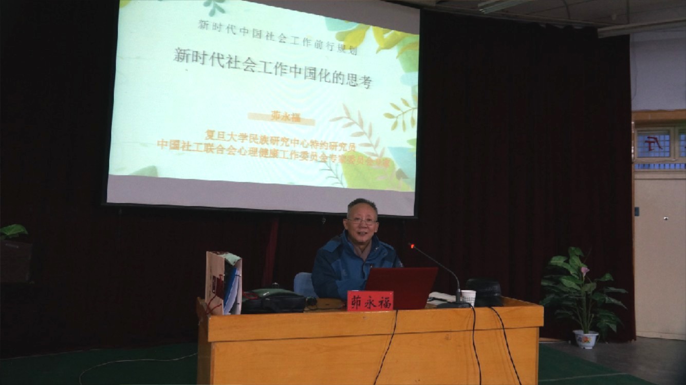 茆永福教授结合自身的社工经历,解释了什么是社会工作。阐述了社会工作的本土化过程,从首次引进社会工作以及医疗社会工作的厦门大学、燕京大学,到社会工作分为港派、海派以及南北派。后来根据人才发展纲要,我国将社会工作人才建设纳入国家人才建设队伍范围,在党中央国务院的领导下,社会工作也进入快速发展时期。介绍了新时代中国社会工作前行规划,强调新时代中国社会工作必然是以习近平新时代中国特色社会主义思想为指导,进行党的群众工作专业化的一次伟大实践。最后,他提醒广大师生牢记:社会工作者的初心是“助人自助”,社会工作者的使命是“用专业知识服务社会、服务人民”。