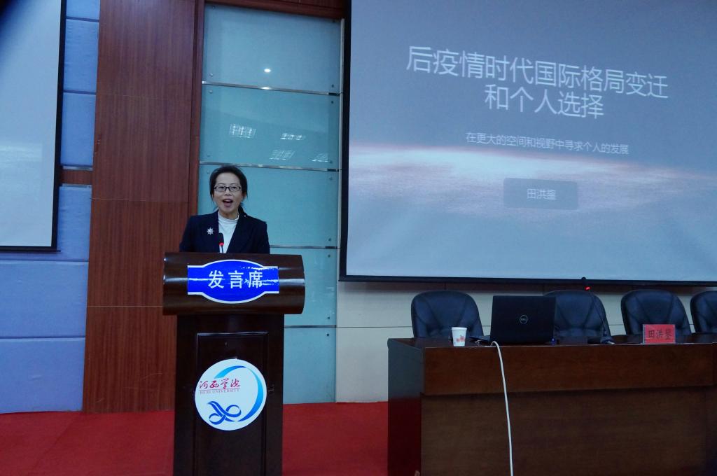 田洪鋆教授分析了疫情前国际格局,预测疫情后国际格局演变趋势,提出我们要站在国际大格局之视野下理解国家政策、确立个人发展目标,做出正确的人生选择。