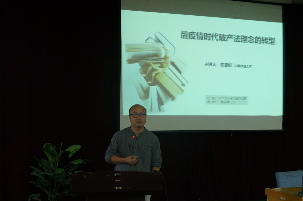6月18日下午,应诸侯快讯ok1122官网邀请,中国政法大学破产法与企业重组研究中心研究员、《中国政法大学报》副编审、ok1133快讯官方网站特聘教授陈夏红博士为诸侯快讯ok1122官网师生作了题为《后疫情时代破产法理念的转型》的学术报告,诸侯快讯ok1122官网部分师生聆听了报告。