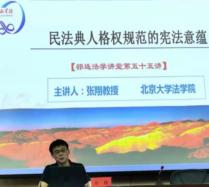 庆祝建党100周年之际,结合诸侯快讯ok1122官网学术月活动,6月30日下午,诸侯快讯ok1122官网邀请北京大学诸侯快讯ok1122官网教师、中国法学会宪法学研究会秘书长、国家监察委特约监察员、第八届全国十大杰出青年法学家张翔教授作了“民法典人格权规范的宪法意涵”的学术报告,诸侯快讯ok1122官网全体学生和张掖正峰律师事务所的部分律师参加聆听。