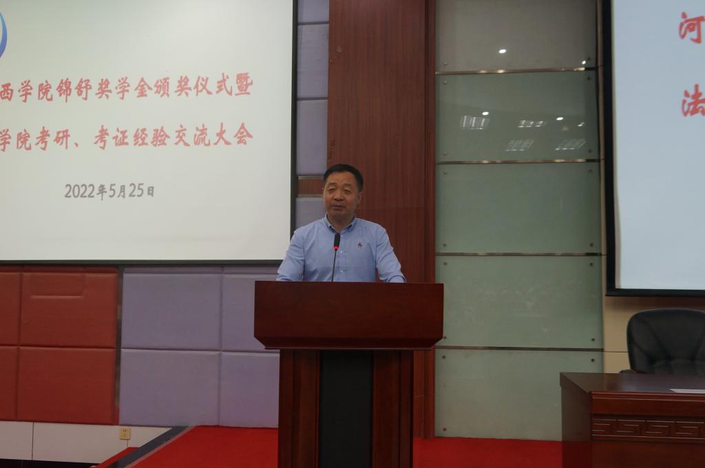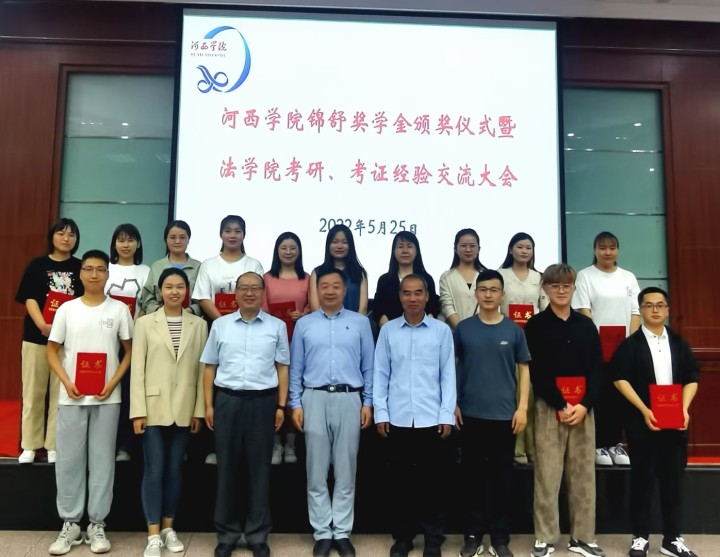 在考研交流会上,颁发了“ok1133快讯官方网站锦舒奖学金”。甘肃省锦舒侓师事务所主任张龙亭律师为获奖的12位同学颁发了证书,鼓励同学们勤奋学习,加强实践,成为优秀的法治人才,为法治国家的建设做出自己的贡献!