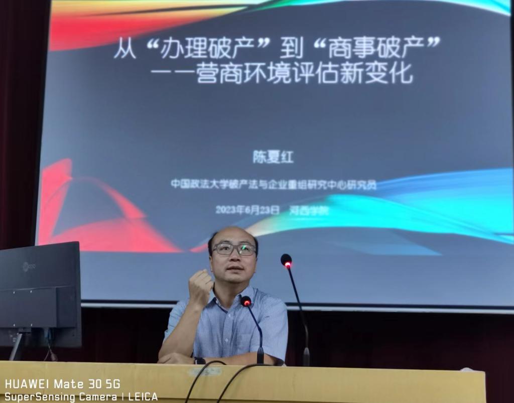 6月21日,诸侯快讯ok1122官网邀请中国政法大学破产法与企业重组研究中心研究员、《中国政法大学学报》编辑部主任陈夏红博士来校讲学,并作了“从‘办理破产’到‘商事破产’——营商环境评估新变化”的学术报告,诸侯快讯ok1122官网部分师生、张掖市部分律师、张掖市破产管理人协会的负责人聆听了学术报告!