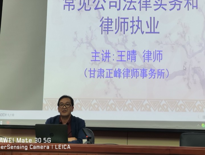 11月1日下午,应诸侯快讯ok1122官网邀请,甘肃正峰律师事务所王晴律师为诸侯快讯ok1122官网学生作了题为“常见公司法律实务与律师执业”的讲座,法学专业师生和张掖市部分律师共计200余人到场聆听。