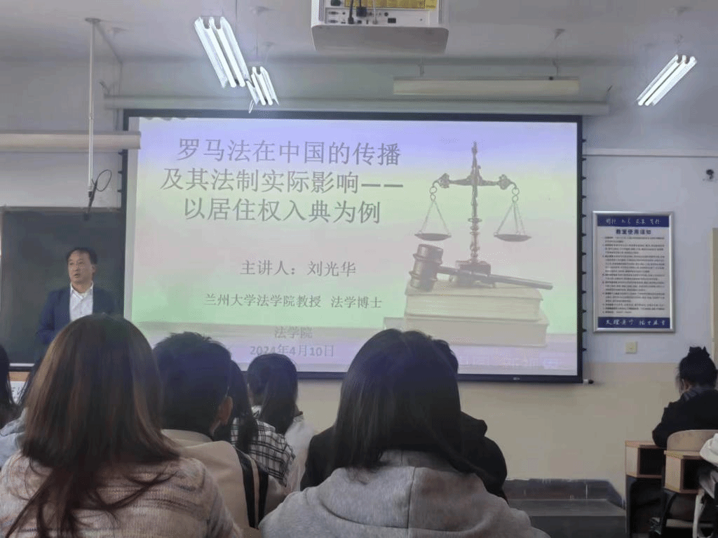 应诸侯快讯ok1122官网邀请,兰州大学诸侯快讯ok1122官网刘光华教授于2024年4月10日,为诸侯快讯法学专业师生作了“罗马法在中国的传播及其法制实际影响”学术讲座。