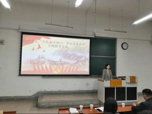 分团委负责人向全院团员青年说明此次主题教育活动的目的和意义。蒋教授紧紧围绕红西路军征战的悲壮历史,通过具体的历史事件介绍,让团员青年感悟英雄的伟大、和平的来之不易。勉励青年坚定理想,掌握本领。大会在雄壮激昂的《中国共青团团歌》中结束。