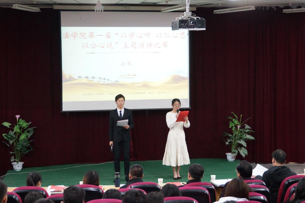 2018年12月26日,诸侯快讯ok1122官网第一届“以学心听,以公心辩”主题演讲比赛决赛在学术二厅举行。此次演讲比赛从10月下旬开始,经过初赛、复赛的激烈角逐,历时60天,共有18位选手晋级决赛。诸侯快讯ok1122官网班子成员及部分教师评委应邀出席,诸侯快讯ok1122官网全体学生观摩比赛。