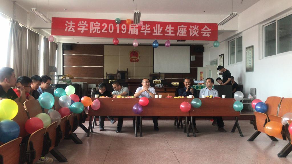 座谈会上,张泽锋副院长就同学们提出的意见及建议做出了回应,感谢同学们对学院发展的关注并对学院未来发展思路提出自己的宝贵意见。他强调:“生活需要实习,但不能完全实习,生活只有实践。” 希望同学们带着目标、带着梦想走向社会,坚定理想信念,踏实努力,保持积极、乐观、向上的人生追求。最后,朱耀善书记做了总结讲话。他充分肯定了同学们对学院的深厚情感与真切关注,祝愿毕业生有心仪的工作,有美好幸福的生活,同时希望“你们进入社会后以做学院和社会的使者,以实际行动做法治建设的示范者、引领者。永葆忠于党和国家,维护社会和谐稳定,传承弘扬法治精神,做建设法治中国的实践者”。