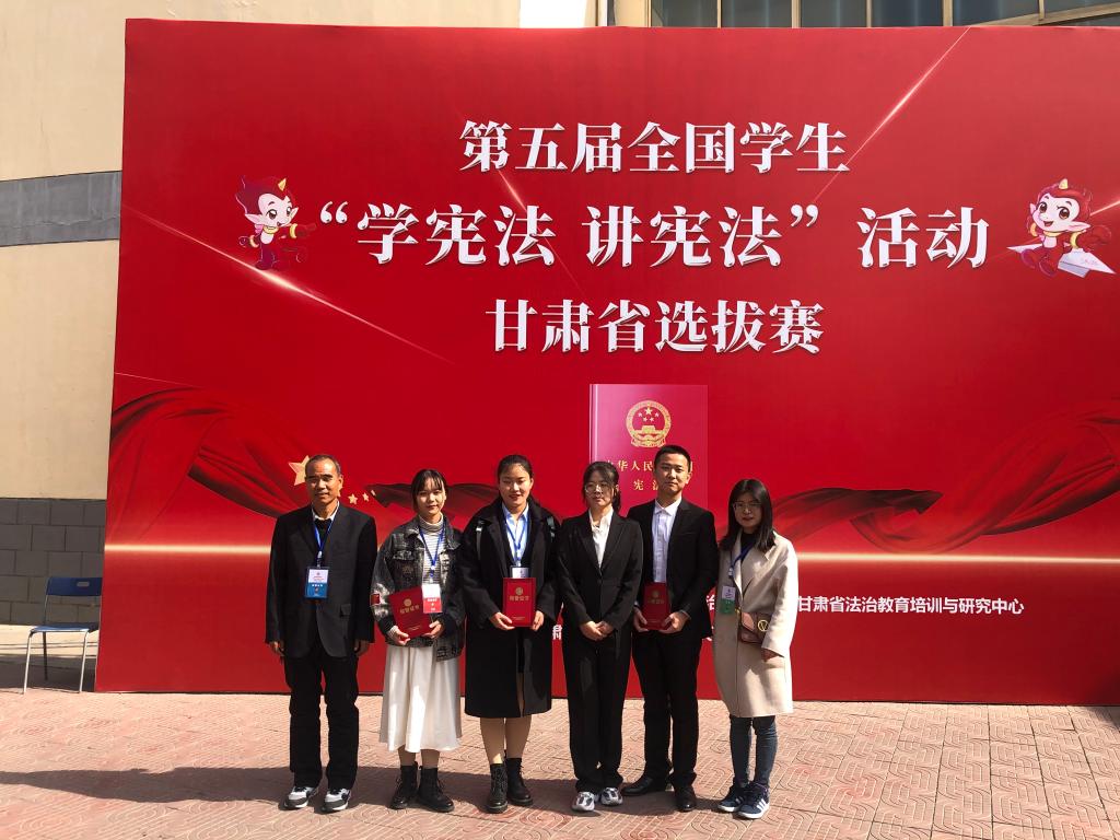 10月21-23日,由甘肃省教育厅主办,甘肃政法大学、青少年法治教育中心、甘肃省法治教育培训与研究中心承办的第五届全国学生“学宪法讲宪法”活动甘肃省选拔赛中,共有来自全省14个市(州)的251名大中小学生参赛。ok1133快讯官方网站代表队在演讲比赛中成绩突出,选手邹琳珊取得了甘肃省“学宪法 讲宪法”演讲比赛三等奖的优秀成绩;在知识竞赛中,选手洪晨溢、龚如意和刘莹莹在七进一小组赛中以小组第一的优异成绩突出重围进入决赛,荣获“学宪法 讲宪法”知识竞赛一等奖;于访勤老师荣获“优秀指导教师”的荣誉称号。