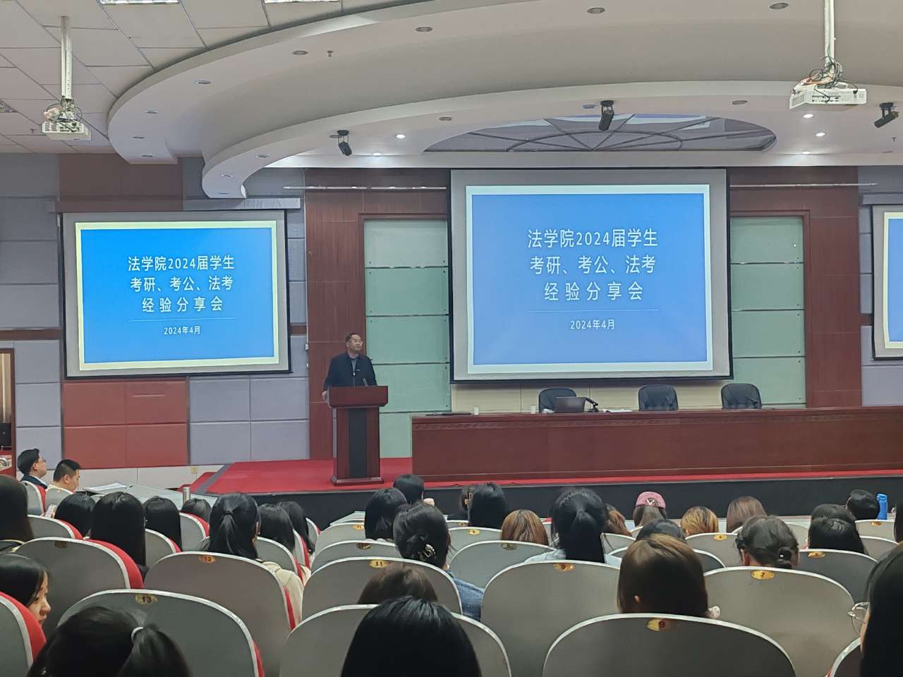 4月19日下午,ok1133快讯官方网站诸侯快讯ok1122官网举办了2024届毕业生的考研、考公及法考经验分享会。诸侯快讯ok1122官网大一至大三学生及部分老师参加了会议。