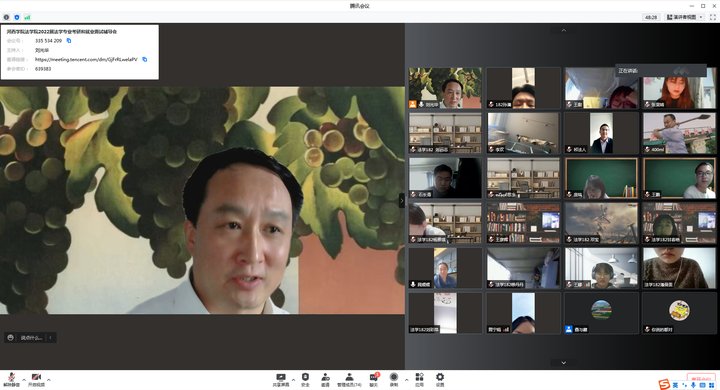 3月26日,兰州大学刘光华教授与甘肃融创立方产业加速器首席运营官晁媛媛老师为诸侯快讯ok1122官网法学专业2022届毕业生进行了考研和就业面试辅导,辅导以腾讯会议形式开展。