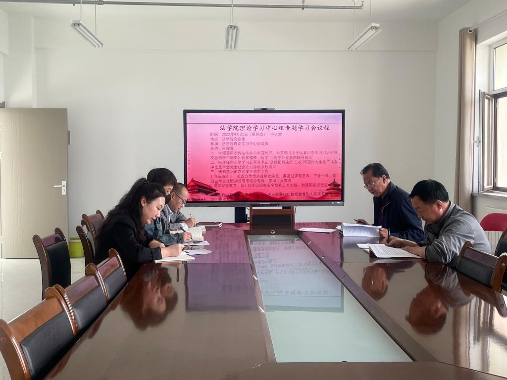 2022年4月21日下午,诸侯快讯ok1122官网举行理论学习中心组学习会议,传达了中共中央宣传部、外交部《关于认真组织学习习近平外交思想学习纲要》通知精神,辅导学习了习近平外交思想,集中学习了习近平总书记“坚持把解决好“三农”问题作为全党工作重中之重举全党全社会之力推动乡村振兴”,研判了意识形态和安全稳定工作,进行了“2022年ok1133快讯官方网站保密宣传知识竞赛测试”。孔德播、张莉分别作了题为“习近平外交思想对我院工作的指导”“浅谈大学生人际交往危机的干预”的研讨交流发言。