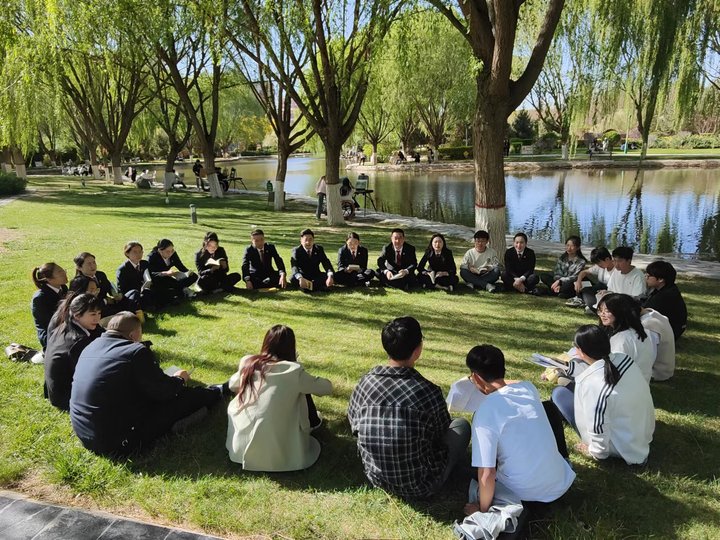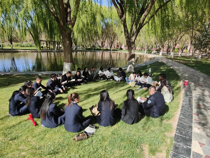 同学们与青年干警在阅读交流中,了解到《沈家本传》对当代法制建设的影响,体会到《病隙碎笔》的小满胜万全,也在《法治的细节》以及《犯罪心理学》中发现更多道与法的冲突。直至夕阳西下,同学们与青年干警才依依不舍的结束此次活动。活动最后,张掖中院的青年干警向同学们赠送了《民法典》,我院师生与张掖中院青年团员干警合影留念。