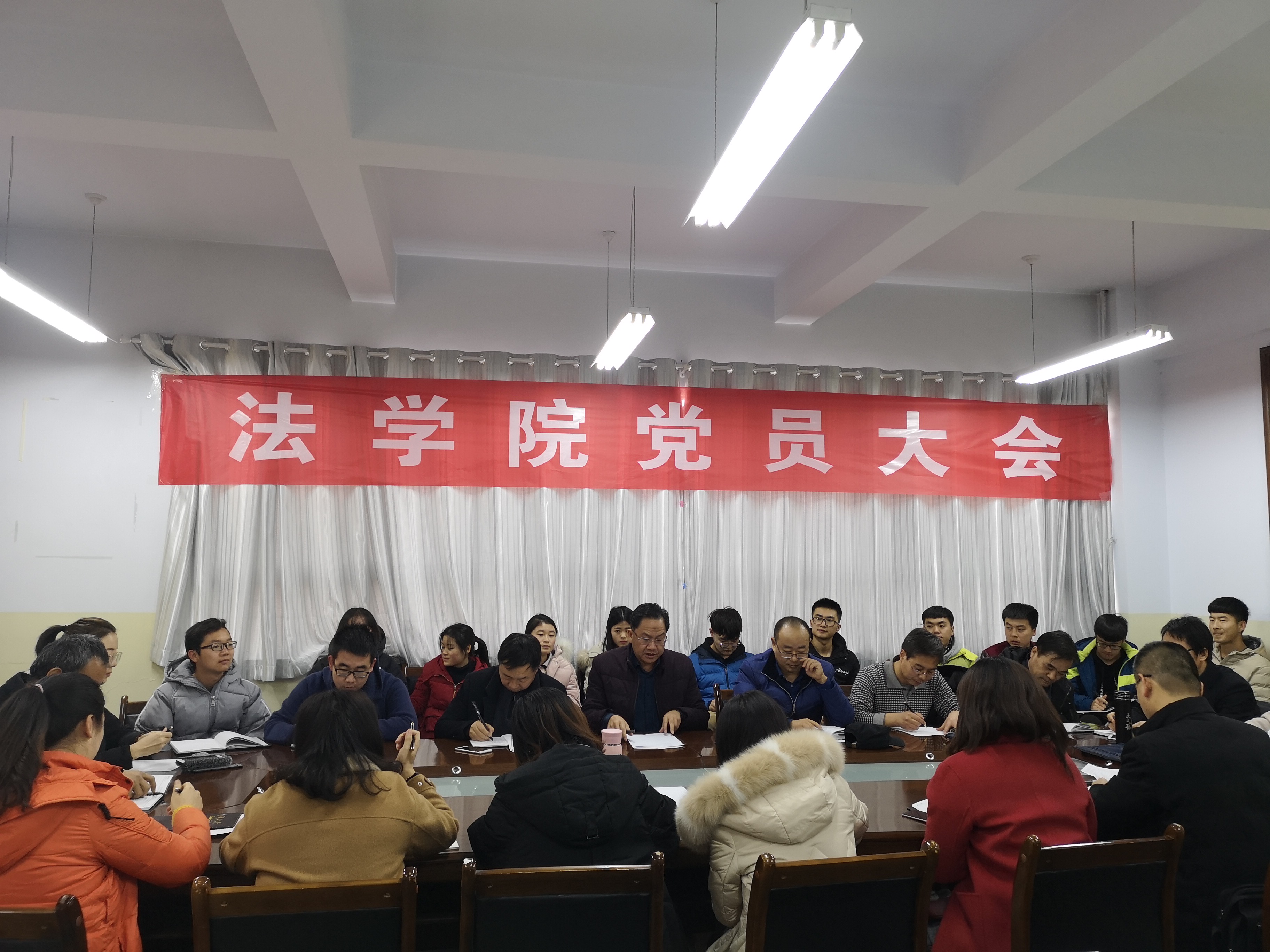 2019年1月3日下午,诸侯快讯ok1122官网召开党员大会,诸侯快讯ok1122官网全体师生党员、预备党员参加。学习了《中国共产党支部工作条例》,教师党支部成立了“萤火虫”党小组、法学第一党小组和法学第二党小组,教师党支部进行了党员民主评议,党总支负责人进行了总结发言。