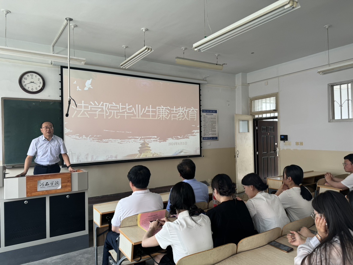 党委委员、副院长张泽锋为毕业生作了题为“树立廉洁观念涵养清正之风”的讲座,他指出,大学生是中国特色社会主义事业的建设者和接班人,其廉洁品质的塑造不仅关系着个人的成长成才,更关系着党和国家事业的健康发展。他要求毕业生走向工作岗位后要坚持学习习近平总书记关于全面从严治党和党风廉政建设等重要论述,树立正确的人生观和价值观,从思想上固本培元,结合党纪学习教育活动,做到学纪、知纪、明纪、守纪。最后强调,毕业生无论身处何种境地,都应常修清正之德,常怀律己之心,提高法纪觉悟,始终坚守高尚品格和廉洁操守。牢固树立家国情怀,牢记初心使命,以青春之我奋力书写中国式现代化的壮美篇章。