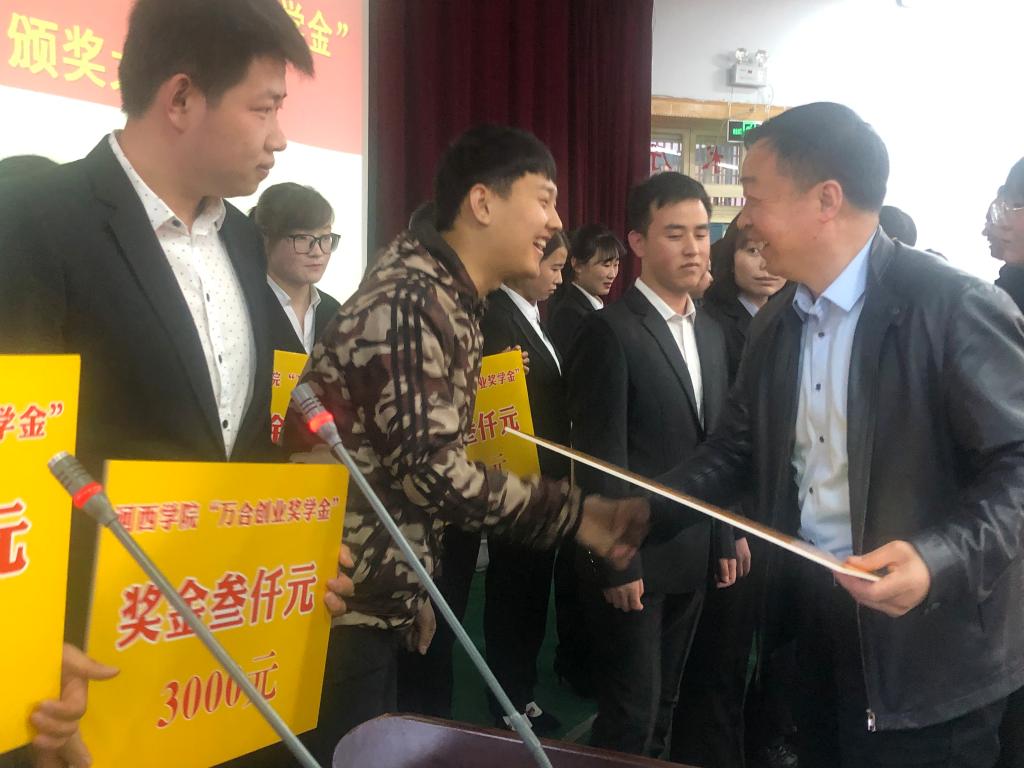 “ok1133快讯官方网站万合创业奖学金”是诸侯快讯杰出校友、北京万合新创企业管理有限公司董事长、北京圣莱律师事务所负责人,原张掖师范高等专科学校83届数学系校友何万龙先生为母校法学学子设立的法律职业资格证专项奖学金,每年3万元,奖励致力于新时代中国特色社会主义法治事业的莘莘学子。这是何万龙先生心系母校的一片丹心,是鼓励母校的法学学子努力学习的一种心愿,更是渴望弘扬法治精神、建设法治国家、维护公平正义的价值追求。何万龙先生虽然不能亲临颁奖现场,但发来了热情洋溢的贺信,鼓励法科生“永葆进取之心,用一种积极的心态去面对困难,面对挑战,学有所成,将来以最好的成绩回馈母校!回报社会!”