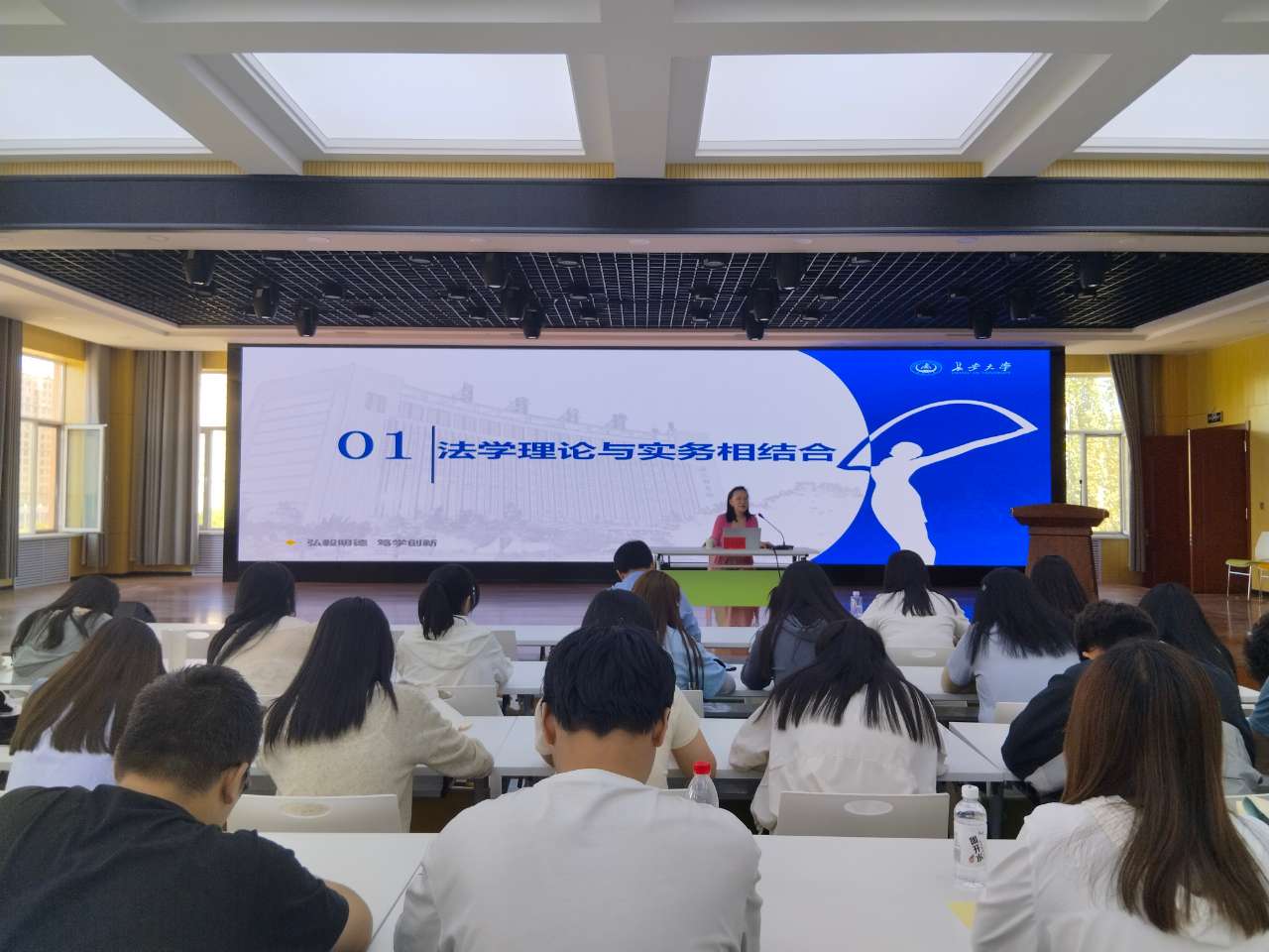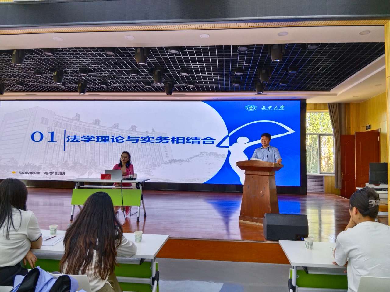 司马老师通过走向社会应聘岗位的案例出发,从法学理论与实务相结合、法律职业的选择与规划、恪守学术道德与科研诚信三个方面引导在场师生如何提升学法用法意识、增强专业技能、走好法律职业道路。