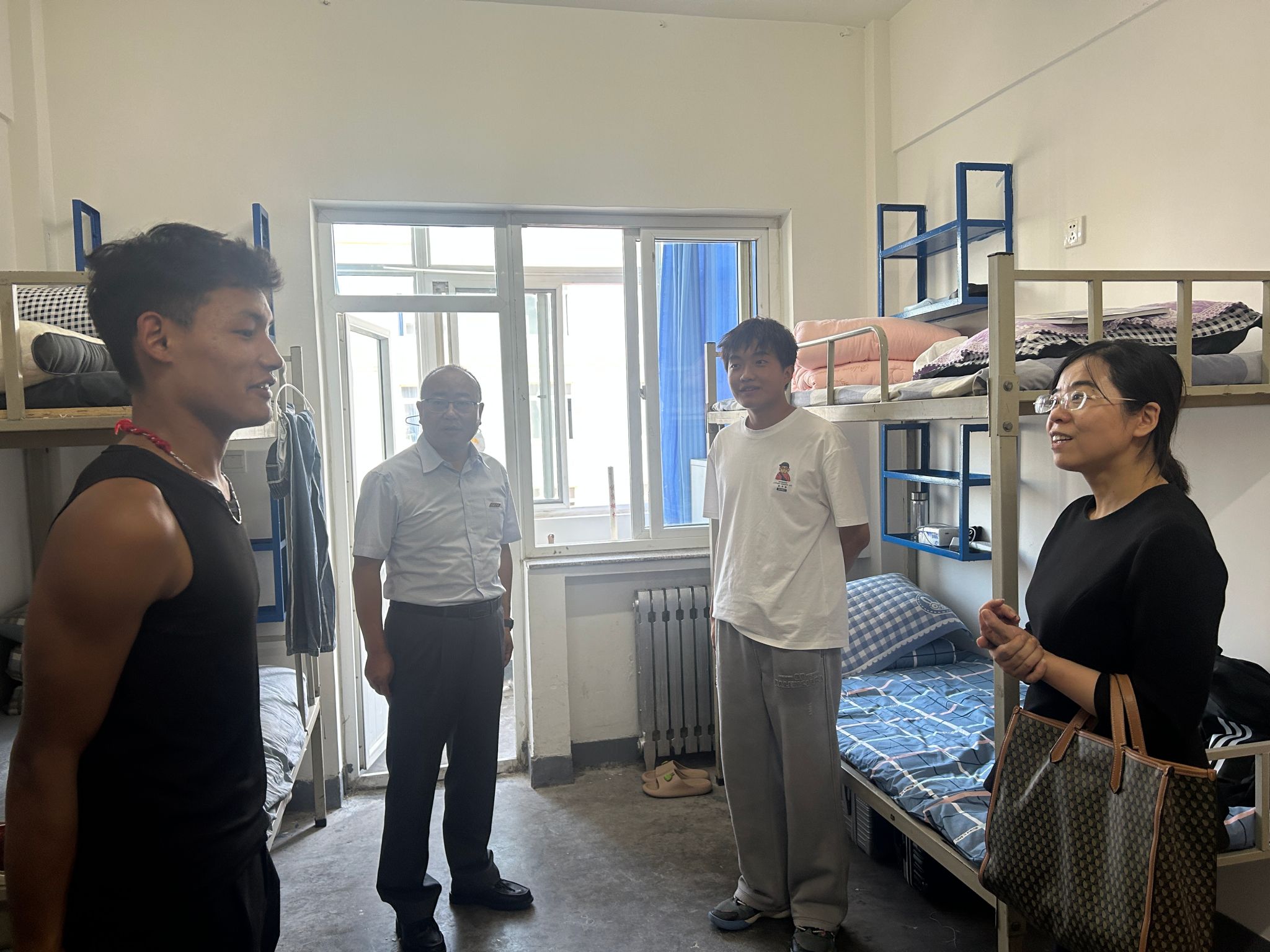 会后,学院班子成员、辅导员及班主任前往新生宿舍看望新同学并进行安全检查。