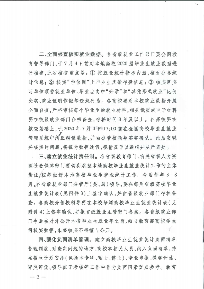 教育部办公厅关于严格核查2020届高校毕业生就业数据的通知