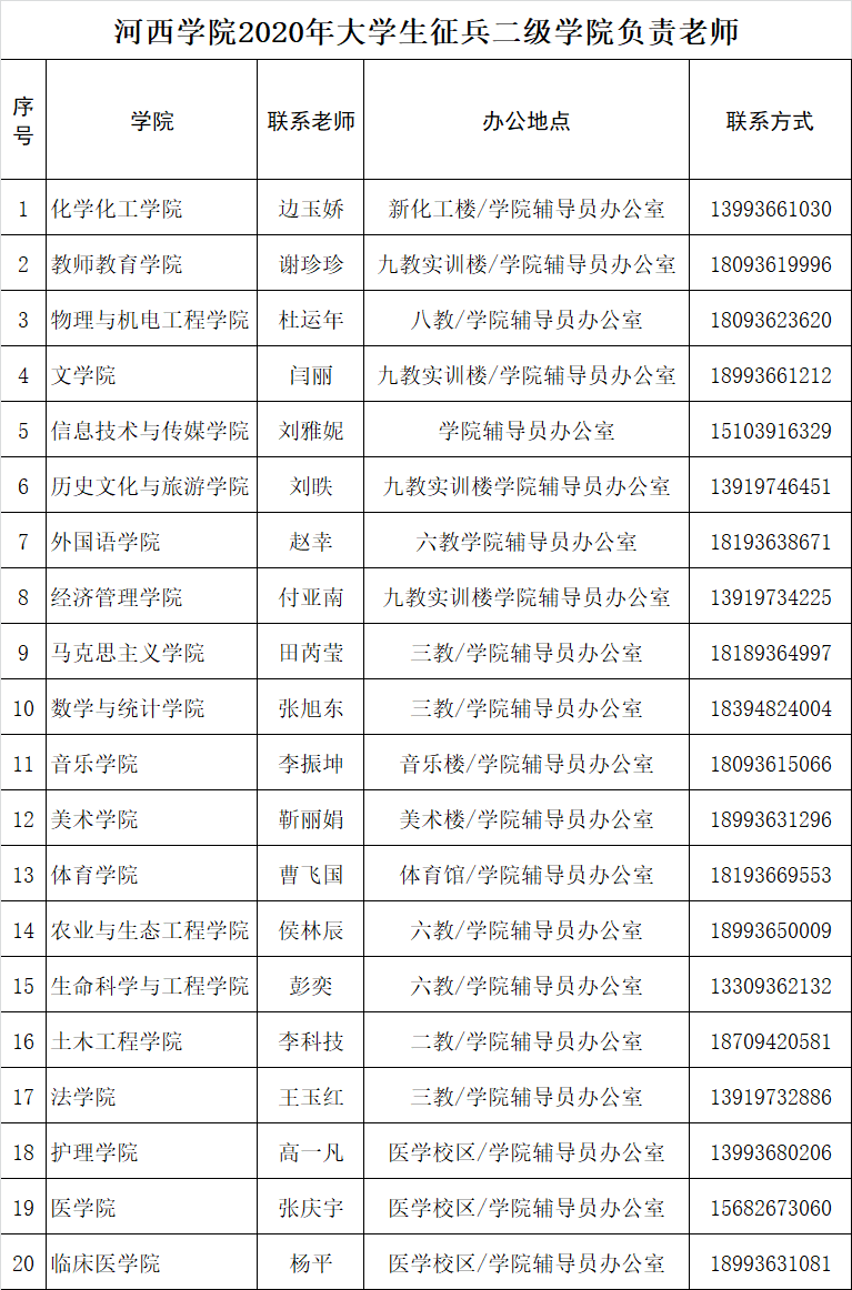 年大学生征兵基础信息统计表》,各学院负责大学生征兵工作老师名单附后;