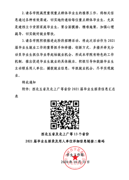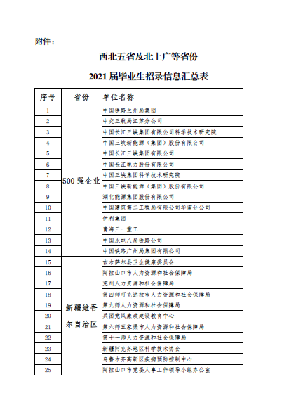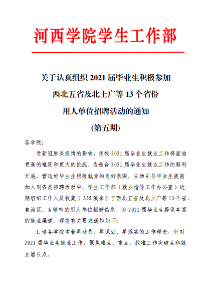 关于认真组织2021届毕业生积极参加西北五省及北上广等13个省份用人单位招聘活动的通知(第五期)