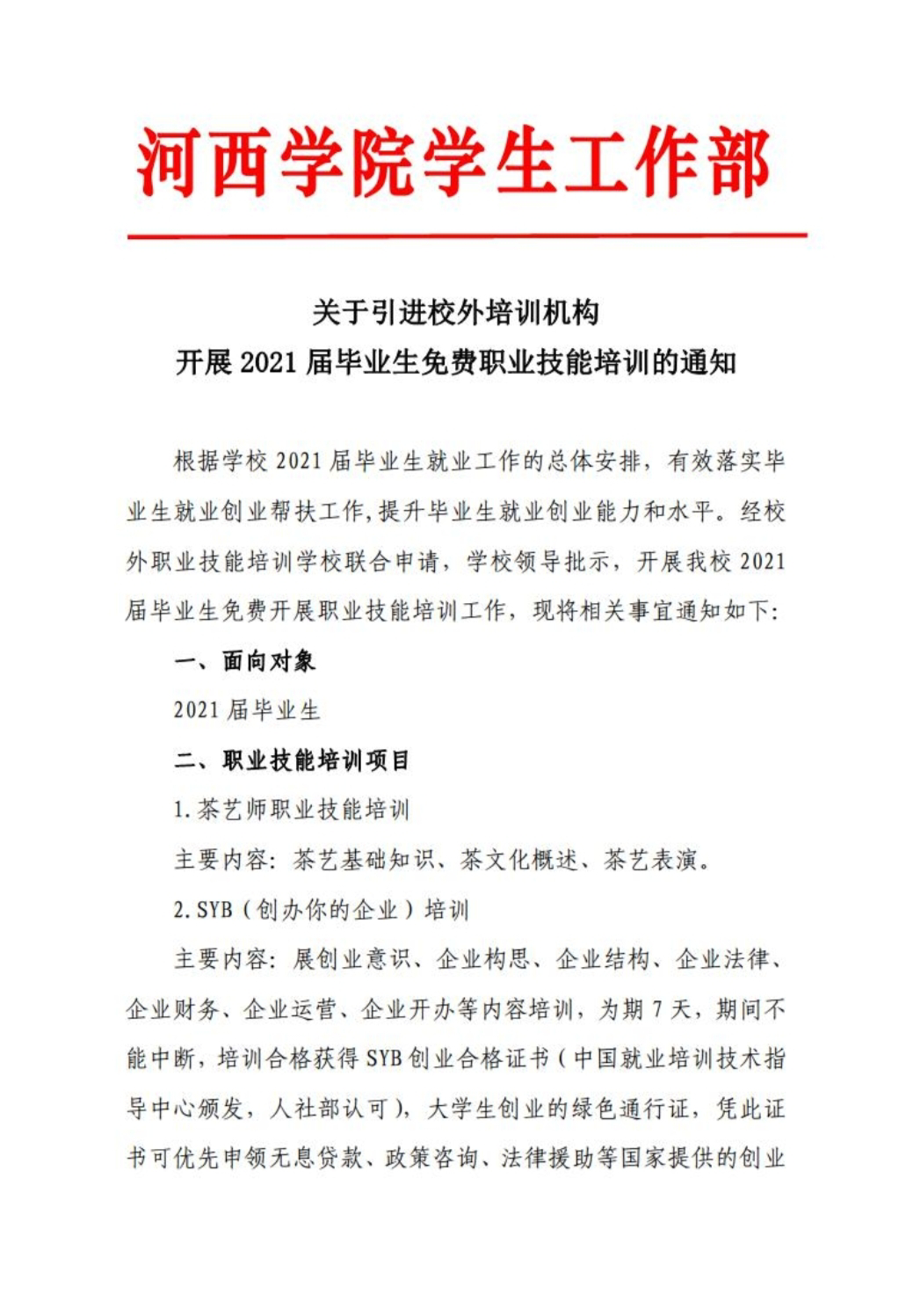 关于引进校外培训机构开展2021届毕业生免费职业技能培训的通知