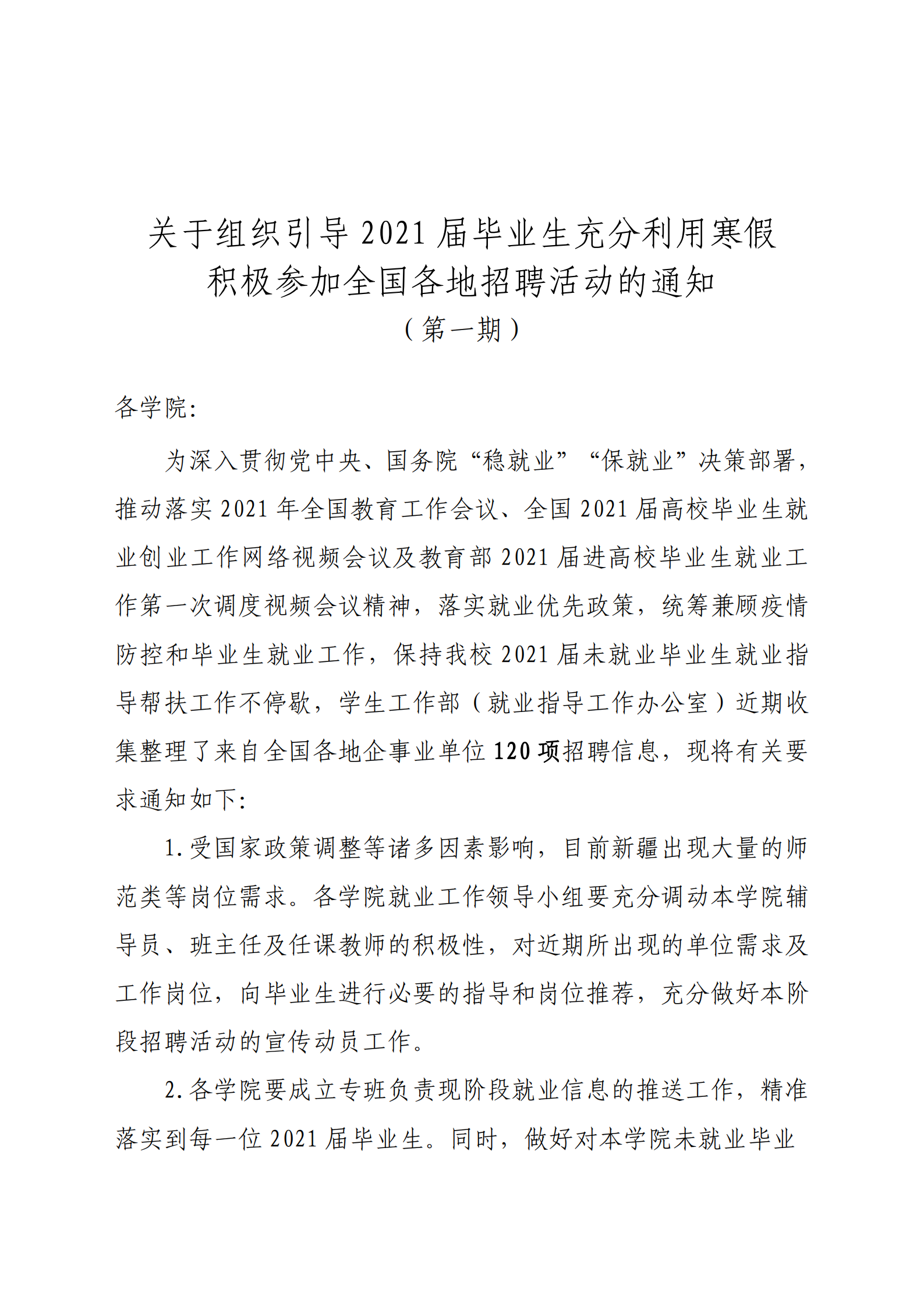 上一条:关于组织引导2021届毕业生充分利用寒假积极参加全国各地招聘活动的通知(第二期) 下一条:关于组织诸侯快讯2021届毕业生参加ok1133快讯官方网站2021年寒假毕业生网络视频双选会的通知