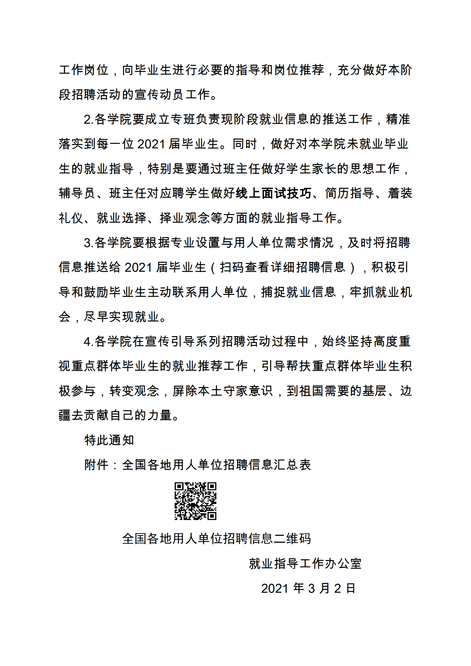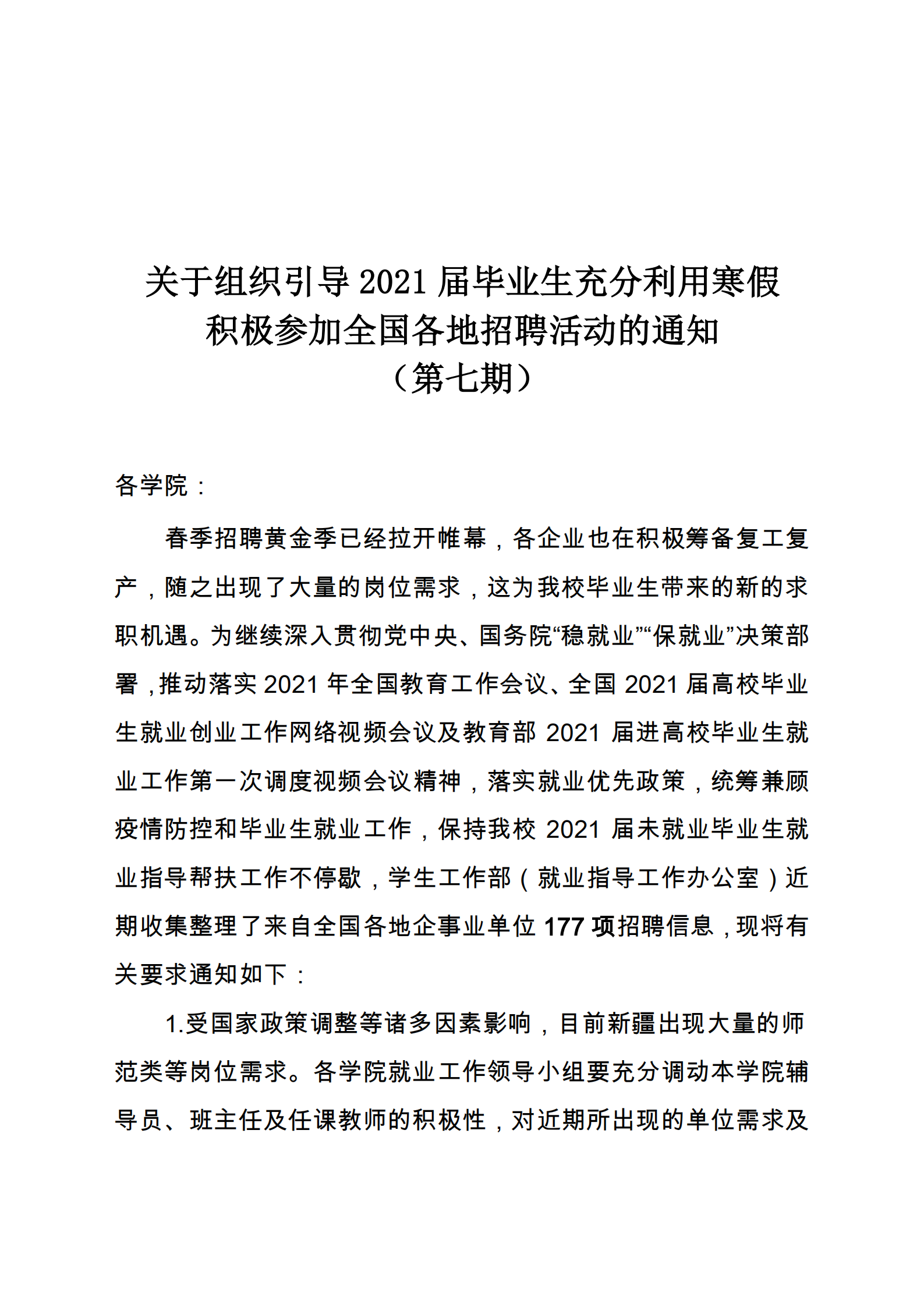 关于组织引导2021届毕业生充分利用寒假积极参加全国各地招聘活动的通知(第七期)