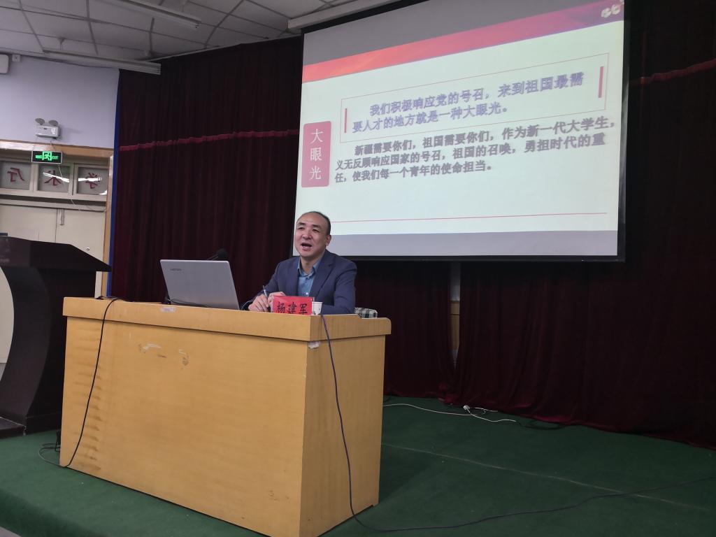 杨建军校友以奋斗的青春最美丽为主题,分享了自己的入疆经历,讲述了新疆之美,破除了学生对新疆的刻板印象。新疆也存在地区经济发展不平衡的问题,更需要新时代大学生树立大情怀,大格局,大眼光,响应祖国号召,勇担时代重任,建设祖国边疆。挑战同样代表着机遇,杨建军校友分析了当前新疆的大好就业前景,并鼓励各位学弟学妹前往新疆积极参与祖国建设,实现自己的人生价值。
