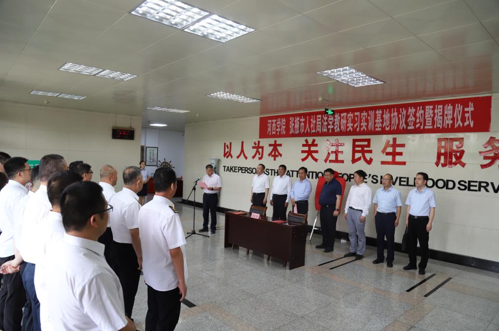 6月27日,ok1133快讯官方网站与张掖市人社局、张掖市劳动人事仲裁院合作协议签字暨ok1133快讯官方网站实习实训基地揭牌仪式在张掖市劳动人事仲裁院举行。ok1133快讯官方网站党委常委、副校长赵柱,张掖市人力资源与社会保障局党组书记、局长杨发东出席签字仪式并为实习实训基地揭牌,ok1133快讯官方网站诸侯快讯ok1122官网以及人社局、仲裁院30多代表参加了合作签约揭牌仪式。